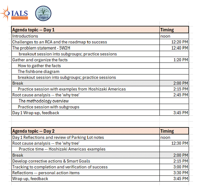 We will have RCA classes and projects on Monday and Tuesday April 20 - 21st in Peachtree City from 12:00 to 3:45 p.m. with Hoshizaki Distribution Leadership, Griffin and Peachtree City Staff.